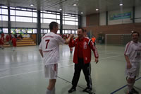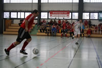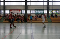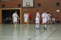 Es wurde die erwartet schwere aber auch reizvolle Aufgabe für unsere Jungs. Im ersten Spiel gegen Erkner, ließ man einige Chancen auf dem Hallenparkett liegen und so kam es dann, dass man durch einen abgefälschten Schuss, kurz vor Ende des Spiels mit leeren Händen da stand und 1:0 verlor. Doch schon im zweiten Spiel lief es besser. Gegen Leuthen konnte man mit 4:1 gewinnen. Das nächste Duell gegen Waltersdorf wurde zwar mit 4:1 verloren, aber von den Spiel- u. Chancenanteilen hätte auch hier mehr drin sein können. Gegen Wriezen konnte man wieder souverän mit 5:1 das Spiel beenden. Nun war Kolkwitz der ersthafte Gegner um die Platzierungen in der oberen Tabellenhälfte des Turniers. Eigentlich konnte uns nur ein Sieg helfen, um weiter von der Endrunde in Kolkwitz zu träumen. Mit diesem Druck konnte die Mannschaft umgehen und lieferte mit der Unterstützung der mitgereisten Fans ein super Spiel, kämpfte um jeden Ball, setzte Kolkwitz extrem unter Druck und konnte mit 3 wunderschönen Toren das Spiel gewinnen. Im letzten Spiel gegen den ungeschlagenen(nicht qualifizierten) 1. FC Frankfurt konnte man zwar kurzzeitig in Führung gehen, aber diese Mannschaft war nicht zu schlagen an diesem Tage, im sportlichen Bereich und auch in der Diskussion um die unberechtigte Teilnahme an diesem Turnier. Am Ende blieb der etwas undankbare 4. Platz für unser Team, trotzdem wir eine gute Hohenleipischer Mannschaft sahen. Danke nochmal an die Mannschaft, Betreuer und Fans für die Unterstützung in der Halle und auf der tollen Heimfahrt, es war ein Erlebnis wert.