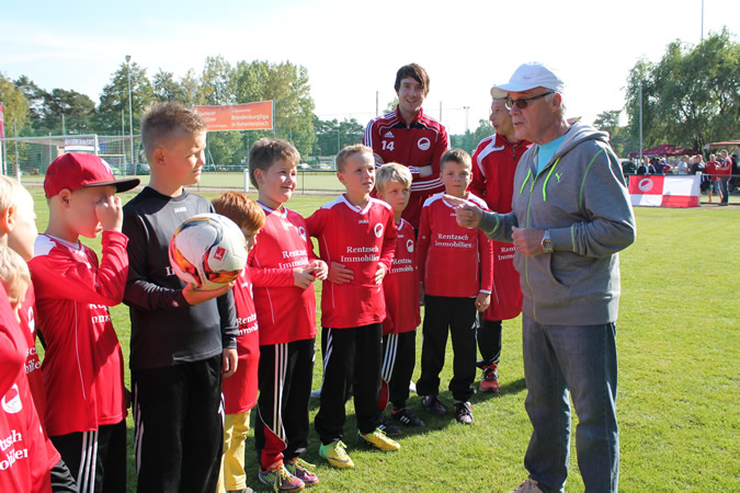 Vor dem Heimspiel der Brandenburgliga-Elf überreichte Winfried Rentzsch von Rentzsch Immobilien einen neuen Trikotsatz unseren Nachwuchskickern.