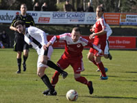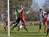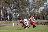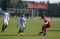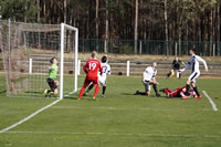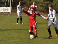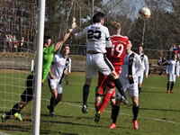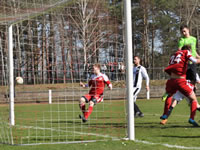 Trotz insgesamt sehr ordentlicher Rückrundenbilanz kam bei den Einheimischen verständlicherweise keine Freude über das erste Remis zwischen beidem Teams auf, gleich wenn Trainer Henrik Pohlenz wegen Krankheit und Verletzung um einige Aufstellungsalternativen gebracht wurde. TuS-Coach Oliver Richter war dagegen "...heilfroh, hier einen Punkt mitgenommen zu haben", wie er im Anschluss meinte. Ob er damit auch eine wohl spielentscheidende Szene kurz vor dem Seitenwechsel meinte, ist offen. Da nämlich wehrte TuS-Kapitän Thomas Boden einen Schuss kurz vor der Linie klar mit der Hand ab, was er im Nachgang auch bestätigte. Statt Feldverweis für den Innenverteidiger und Strafstoß für die Platzherren ließ Schiedsrichter Martin Hagemeister zum Entsetzen der VfB-Anhängerschaft weiterspielen. Ärgerlich ohne Frage, zumal es nicht seine erste, möglicherweise entscheidende Fehleinschätzung gegen die Einheimischen in dieser Saison war, allerdings hatte Hohenleipisch zu diesem Zeitpunkt auch schon ein paar Möglichkeiten liegen gelassen. Nach holprigem Beginn war der Gastgeber nach einer Viertelstunde in die Gänge gekommen und bestimmte das Geschehen. Auf Zuspiel von Torsten Schollbach wehrte der über die gesamte Spieldauer sehr unsichere TuS-Keeper Uros Kabanica Sascha Gutsches Schuss nach vorn ab und Paul Werner kam bei dieser ersten gefährlichen Szene im Nachsetzen einen Tic zu spät (19.). Der VfB mit der gefälligerem Spielanlage machte es sich durch Unkonzentriertheit in der letzten Angriffsphase und damit verbundenen, unnötigen Ballverlusten oft selbst schwer und hatte nach zwei Distanzschüssen (23., 24.) knapp neben den Kasten per Freistoß die beste Möglichkeit zur Führung. Der Ball von Paul Werner knallte aber an das Lattenkreuz und Gutsche verzog den Nachschuss (34.). Bei Sachsenhausen lief nicht viel zusammen, nach vorn ging quasi gar nichts und Kabanica musste zusammen mit seinen Vorderleuten zweimal in höchster Not klären. Es folgte die oben beschriebene Hand-Aktion, bevor es mit einem aus TuS-Sicht glücklichem 0:0 in die Kabinen ging. Die zweite Hälfte sollte nicht unbedingt bessere Fußballkost bieten, aber aufregend alle mal werden. Die Hohenleipischer, weiter spielbestimmend, brauchten mehr als eine Viertelstunde bis zur ersten Toraktion, als Schollbach aus gut zwanzig Metern einfach abzog. Der Gästeschlussmann reagierte gar nicht, als die Kugel am Pfosten vorbeistreifte (64.). Wenig später stellten die Rand-Berliner mit ihrem ersten Torschuss den Spielverlauf auf den Kopf, als Christopher Groll Nutznießer einer unglücklichen VfB-Abwehraktion war und unbedrängt einschieben konnte (69.). Ein paar Minuten brauchten die Platzherren zur Besinnung und starteten nach der einzig notwendigen Abwehraktion von Christian Drangosch im VfB-Kasten (72.) eine furiose Schlussphase. Nach der ersten Großchance (77.) ging nach einem Freistoß Werners volley genommener Ball aus zwölf Metern nur Zentimeter über die Latte (82.) und dann hatte Gutsche, nachdem der Tormann den Ball wieder prallen gelassen hatte, aus vier Metern den Ausgleich auf dem Fuß (84.), aber auch sein Schuss ging um Haaresbreite drüber, jedoch lag der Ball nach der nächsten Aktion endlich im TuS-Netz zum überfälligen Gleichstand (85.). Augenblicke nach seiner Einwechslung köpfte Christian David im Anschluss an eine Ecke zum umjubelten 1:1 ein. Der VfB drängte vehement, das Tor-Netz wackelte auch, aber Werners Freistoß vom Strafraumeck in Richtung kurzer Pfosten verfehlte das Ziel wieder knapp (89.).