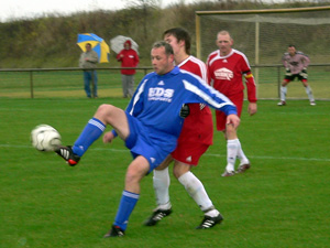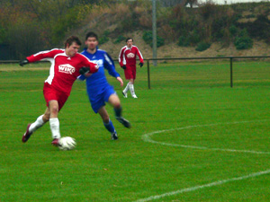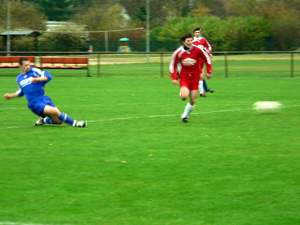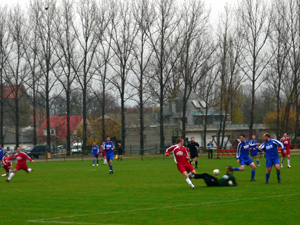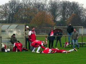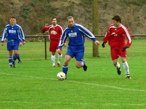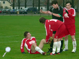 VfB-Kapitän mit diving vor der Hohenleipischer