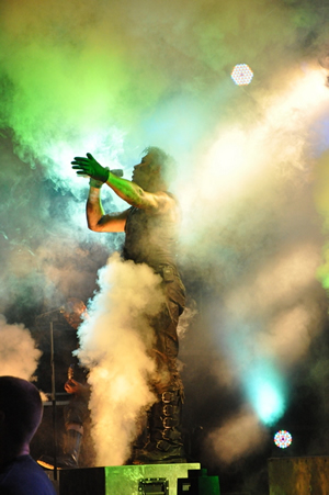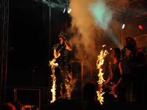 und einem Bühnen- Pyro- und Flammenfeuerwerk kräftig
