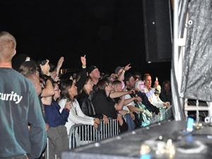 heizte den zahlreichen Besuchern mit deutscher Rockmusik