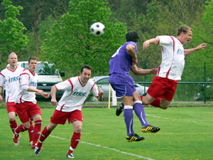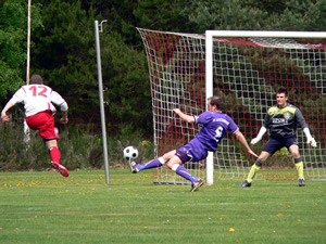 Oberligisten, der Ball ging aber knapp am rechten Pfosten