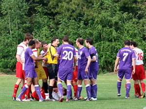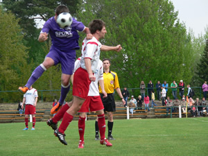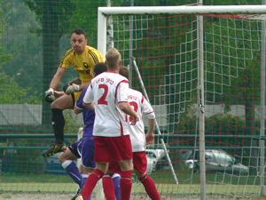 Amende oben auf - hat gerade einen Eckball gefaustet. |