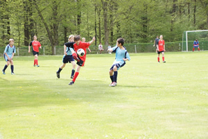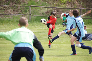 von der Mittellinie, von Anne hoch in den Strafraum geschossen,