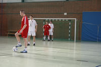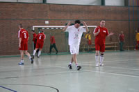 Es wurde die erwartet schwere aber auch reizvolle Aufgabe für unsere Jungs. Im ersten Spiel gegen Erkner, ließ man einige Chancen auf dem Hallenparkett liegen und so kam es dann, dass man durch einen abgefälschten Schuss, kurz vor Ende des Spiels mit leeren Händen da stand und 1:0 verlor. Doch schon im zweiten Spiel lief es besser. Gegen Leuthen konnte man mit 4:1 gewinnen. Das nächste Duell gegen Waltersdorf wurde zwar mit 4:1 verloren, aber von den Spiel- u. Chancenanteilen hätte auch hier mehr drin sein können. Gegen Wriezen konnte man wieder souverän mit 5:1 das Spiel beenden. Nun war Kolkwitz der ersthafte Gegner um die Platzierungen in der oberen Tabellenhälfte des Turniers. Eigentlich konnte uns nur ein Sieg helfen, um weiter von der Endrunde in Kolkwitz zu träumen. Mit diesem Druck konnte die Mannschaft umgehen und lieferte mit der Unterstützung der mitgereisten Fans ein super Spiel, kämpfte um jeden Ball, setzte Kolkwitz extrem unter Druck und konnte mit 3 wunderschönen Toren das Spiel gewinnen. Im letzten Spiel gegen den ungeschlagenen(nicht qualifizierten) 1. FC Frankfurt konnte man zwar kurzzeitig in Führung gehen, aber diese Mannschaft war nicht zu schlagen an diesem Tage, im sportlichen Bereich und auch in der Diskussion um die unberechtigte Teilnahme an diesem Turnier. Am Ende blieb der etwas undankbare 4. Platz für unser Team, trotzdem wir eine gute Hohenleipischer Mannschaft sahen. Danke nochmal an die Mannschaft, Betreuer und Fans für die Unterstützung in der Halle und auf der tollen Heimfahrt, es war ein Erlebnis wert.