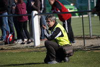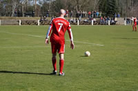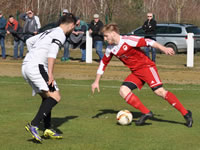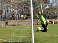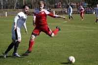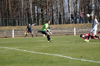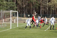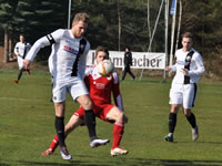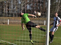 Trotz insgesamt sehr ordentlicher Rückrundenbilanz kam bei den Einheimischen verständlicherweise keine Freude über das erste Remis zwischen beidem Teams auf, gleich wenn Trainer Henrik Pohlenz wegen Krankheit und Verletzung um einige Aufstellungsalternativen gebracht wurde. TuS-Coach Oliver Richter war dagegen "...heilfroh, hier einen Punkt mitgenommen zu haben", wie er im Anschluss meinte. Ob er damit auch eine wohl spielentscheidende Szene kurz vor dem Seitenwechsel meinte, ist offen. Da nämlich wehrte TuS-Kapitän Thomas Boden einen Schuss kurz vor der Linie klar mit der Hand ab, was er im Nachgang auch bestätigte. Statt Feldverweis für den Innenverteidiger und Strafstoß für die Platzherren ließ Schiedsrichter Martin Hagemeister zum Entsetzen der VfB-Anhängerschaft weiterspielen. Ärgerlich ohne Frage, zumal es nicht seine erste, möglicherweise entscheidende Fehleinschätzung gegen die Einheimischen in dieser Saison war, allerdings hatte Hohenleipisch zu diesem Zeitpunkt auch schon ein paar Möglichkeiten liegen gelassen. Nach holprigem Beginn war der Gastgeber nach einer Viertelstunde in die Gänge gekommen und bestimmte das Geschehen. Auf Zuspiel von Torsten Schollbach wehrte der über die gesamte Spieldauer sehr unsichere TuS-Keeper Uros Kabanica Sascha Gutsches Schuss nach vorn ab und Paul Werner kam bei dieser ersten gefährlichen Szene im Nachsetzen einen Tic zu spät (19.). Der VfB mit der gefälligerem Spielanlage machte es sich durch Unkonzentriertheit in der letzten Angriffsphase und damit verbundenen, unnötigen Ballverlusten oft selbst schwer und hatte nach zwei Distanzschüssen (23., 24.) knapp neben den Kasten per Freistoß die beste Möglichkeit zur Führung. Der Ball von Paul Werner knallte aber an das Lattenkreuz und Gutsche verzog den Nachschuss (34.). Bei Sachsenhausen lief nicht viel zusammen, nach vorn ging quasi gar nichts und Kabanica musste zusammen mit seinen Vorderleuten zweimal in höchster Not klären. Es folgte die oben beschriebene Hand-Aktion, bevor es mit einem aus TuS-Sicht glücklichem 0:0 in die Kabinen ging. Die zweite Hälfte sollte nicht unbedingt bessere Fußballkost bieten, aber aufregend alle mal werden. Die Hohenleipischer, weiter spielbestimmend, brauchten mehr als eine Viertelstunde bis zur ersten Toraktion, als Schollbach aus gut zwanzig Metern einfach abzog. Der Gästeschlussmann reagierte gar nicht, als die Kugel am Pfosten vorbeistreifte (64.). Wenig später stellten die Rand-Berliner mit ihrem ersten Torschuss den Spielverlauf auf den Kopf, als Christopher Groll Nutznießer einer unglücklichen VfB-Abwehraktion war und unbedrängt einschieben konnte (69.). Ein paar Minuten brauchten die Platzherren zur Besinnung und starteten nach der einzig notwendigen Abwehraktion von Christian Drangosch im VfB-Kasten (72.) eine furiose Schlussphase. Nach der ersten Großchance (77.) ging nach einem Freistoß Werners volley genommener Ball aus zwölf Metern nur Zentimeter über die Latte (82.) und dann hatte Gutsche, nachdem der Tormann den Ball wieder prallen gelassen hatte, aus vier Metern den Ausgleich auf dem Fuß (84.), aber auch sein Schuss ging um Haaresbreite drüber, jedoch lag der Ball nach der nächsten Aktion endlich im TuS-Netz zum überfälligen Gleichstand (85.). Augenblicke nach seiner Einwechslung köpfte Christian David im Anschluss an eine Ecke zum umjubelten 1:1 ein. Der VfB drängte vehement, das Tor-Netz wackelte auch, aber Werners Freistoß vom Strafraumeck in Richtung kurzer Pfosten verfehlte das Ziel wieder knapp (89.).