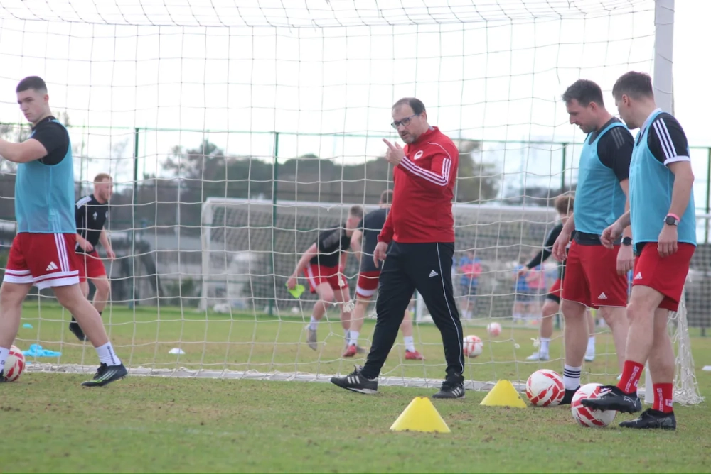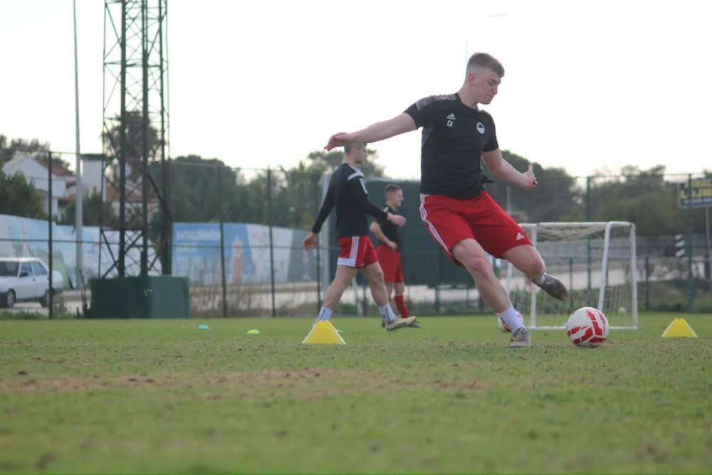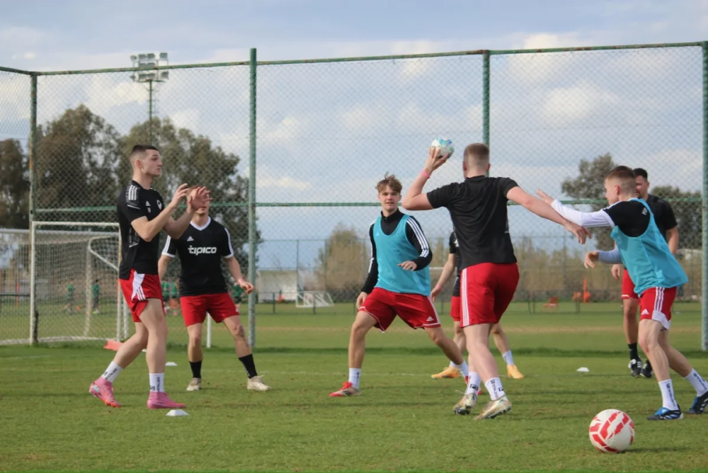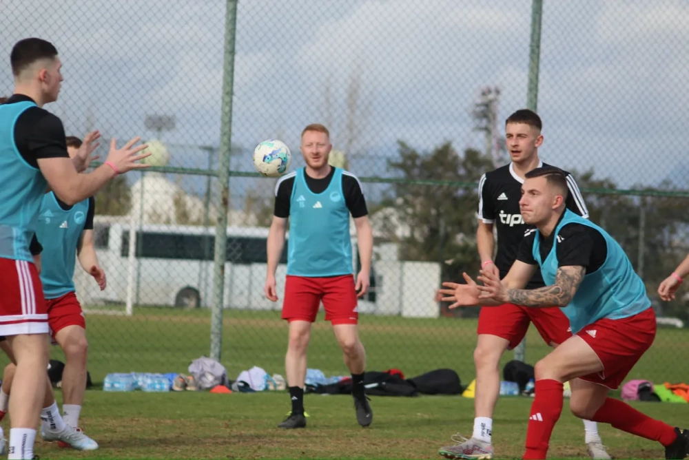 Pünktlich zum Start der morgendlichen Einheit verzog sich der Regen, sodass die Mannschaft optimale Bedingungen vorfand. Trainiert wurde heute auf dem Hauptplatz des Partnerhotels Limak Arcadia direkt am Meer – beste Voraussetzungen für eine intensive Einheit.