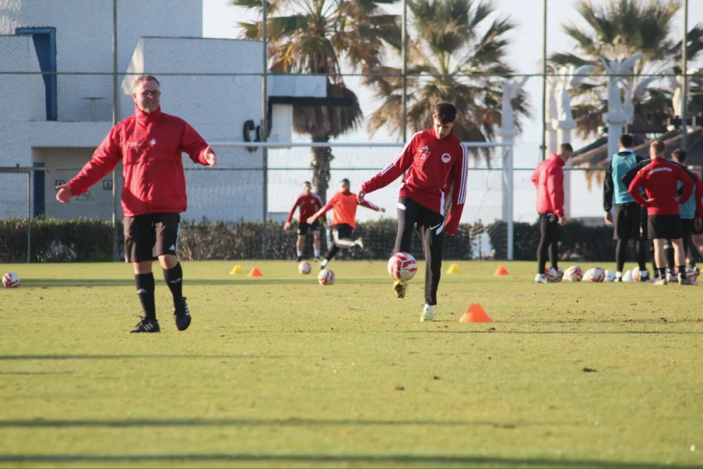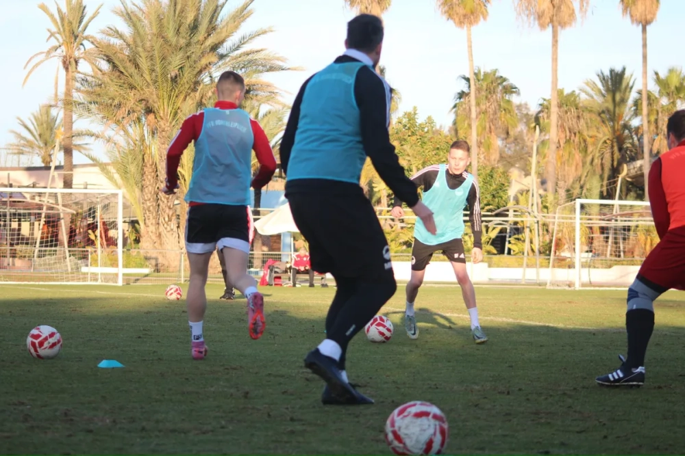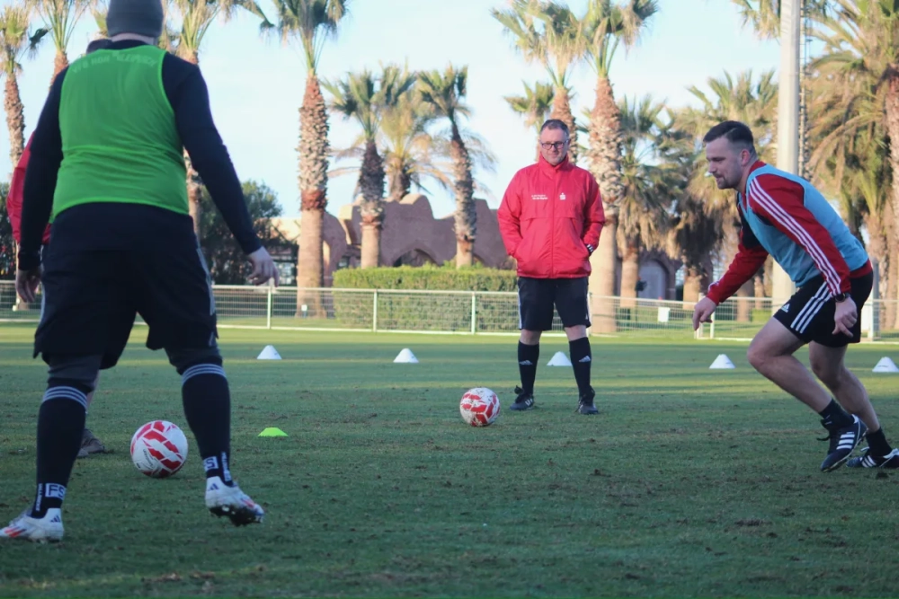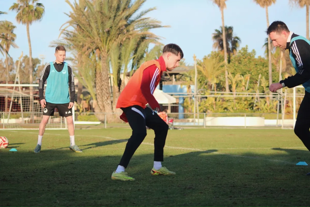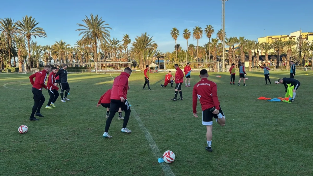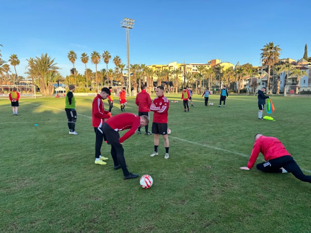 Auch der dritte Tag im Trainingslager startete früh. Um 08:15 Uhr absolvierte die Mannschaft eine kompakte Aktivierungseinheit, um den Körper auf Betriebstemperatur zu bringen und sich gezielt auf das anstehende Testspiel einzustimmen. Nach dem gemeinsamen Aufwärmen folgten Spielformen in kleinen Feldern mit Überzahlsituationen für die Teamwertung.