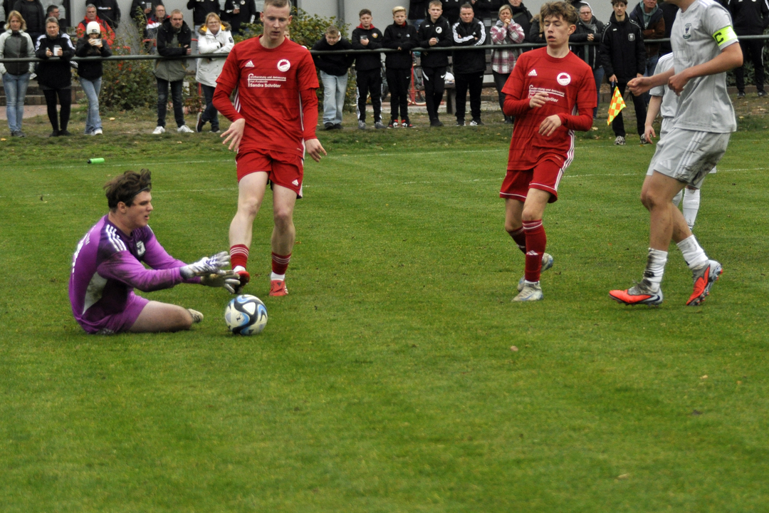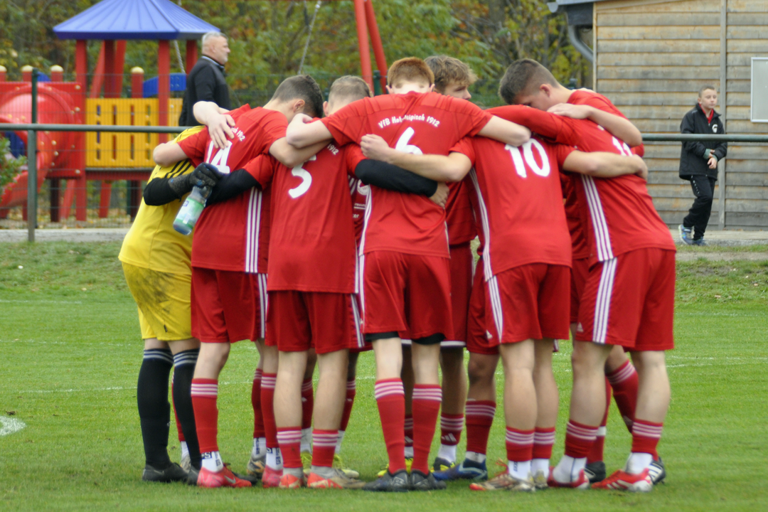 Mit Wiederbeginn zeigten die Platzherren aber ein anders Gesicht, gewannen endlich Zweikämpfe und steigerten sich vor allem kämpferisch. Nach Ecke war man nach einer Stunde mit dem 2:3 wieder dran und nach dem inzwischen verdienten Ausgleich wollte die Mannschaft vom Trainer-Duo Henrik Pohlenz/Stefan Werner auch den Sieg. Dabei wurden die VfB-Junioren lautstark vom Publikum unterstützt und letztlich für ihren tollen Einsatz und ihre erhebliche Steigerung nach dem Wechsel belohnt.