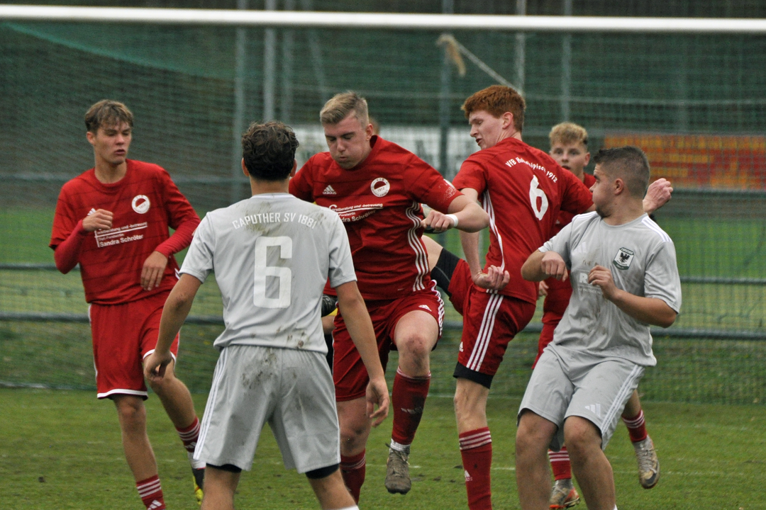 Die Hohenleipischer Junioren gingen früh in Führung, ließen sich aber von den Gästen zunehmend den Schneid abkaufen, die den Ball besser laufen ließen. Die klareren Chancen hatte dennoch der VfB, dabei sogar drei sogenannte einhundertprozentige. Caputh drehte schließlich das Ergebnis noch vor der Pause und ging Sekunden vor dem Halbzeitpfiff gar mit zwei Toren Vorsprung in Führung.