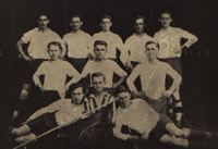 Aus diesem Haufen wurde nun eine Mannschaft gebildet. Wir sind dann im Sonntagsanzug gefahren und haben mit der 2. Mannschaft von Biehla erstmals ein Wettspiel ausgetragen. Hier sahen und erlebten wirzum ersten mal, was Fußballspielen heißt: Die Schuhe voll Sand, die Hemden stark geschwitzt und lahme Beine und 13:0 als zweiter Gewinner verloren. Nach einigen Wochen haben wir dann die Mannschaft umgestellt, dazu mit Rümler und Usadel besetzt. Dann haben wir uns kleinere Mannschaften besorgt und es klappte dann besser. Von Richard Kühne bekamen wir den ersten Platz auf der Trift. Das erste Spiel dort wurde mit 4:0 gegen Sorno gewonnen. Bester Torschütze war Martin Rümler“ (Lehrer und der spätere langjährige Vereinsvorsitzende).
