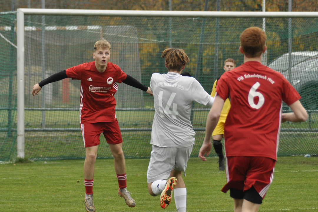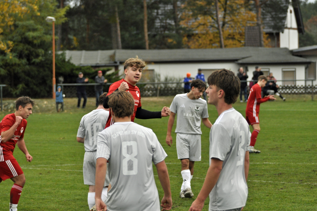 Die Hohenleipischer Junioren gingen früh in Führung, ließen sich aber von den Gästen zunehmend den Schneid abkaufen, die den Ball besser laufen ließen. Die klareren Chancen hatte dennoch der VfB, dabei sogar drei sogenannte einhundertprozentige. Caputh drehte schließlich das Ergebnis noch vor der Pause und ging Sekunden vor dem Halbzeitpfiff gar mit zwei Toren Vorsprung in Führung.