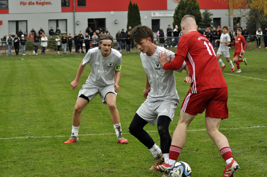 Mit Wiederbeginn zeigten die Platzherren aber ein anders Gesicht, gewannen endlich Zweikämpfe und steigerten sich vor allem kämpferisch. Nach Ecke war man nach einer Stunde mit dem 2:3 wieder dran und nach dem inzwischen verdienten Ausgleich wollte die Mannschaft vom Trainer-Duo Henrik Pohlenz/Stefan Werner auch den Sieg. Dabei wurden die VfB-Junioren lautstark vom Publikum unterstützt und letztlich für ihren tollen Einsatz und ihre erhebliche Steigerung nach dem Wechsel belohnt.