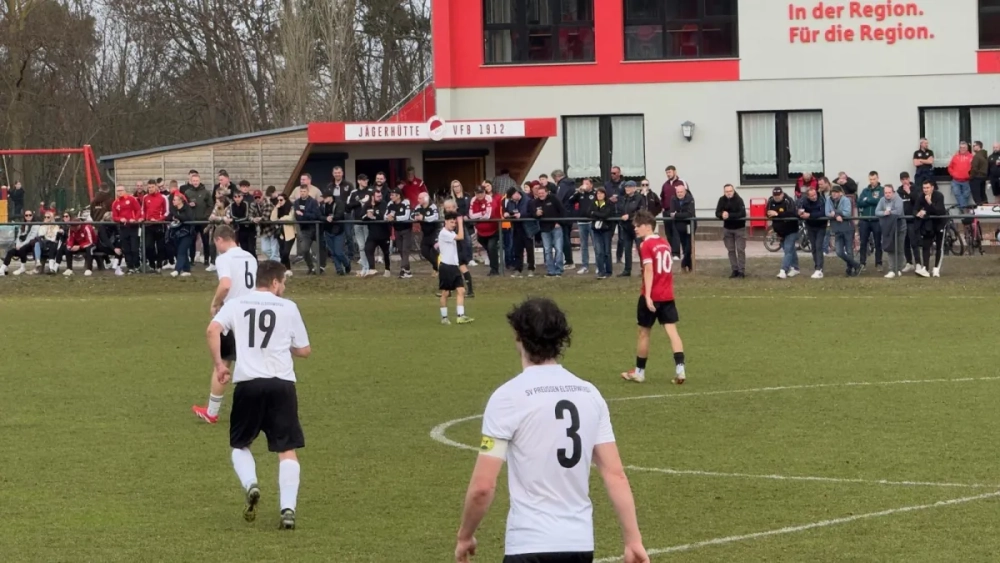 Die Gäste aus Elsterwerda reisten als Spitzenreiter an und gingen entsprechend als Favorit in die Partie. Dennoch entwickelte sich von Beginn an ein ausgeglichenes Spiel zweier ebenbürtiger Mannschaften. Die Defensive der Preußen – mit bislang erst wenigen Gegentoren eines der Prunkstücke der Liga – stand gewohnt stabil, während auch die VfB-Hintermannschaft konzentriert und engagiert verteidigte.