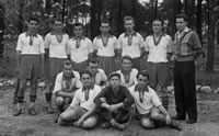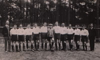 Aus diesem Haufen wurde nun eine Mannschaft gebildet. Wir sind dann im Sonntagsanzug gefahren und haben mit der 2. Mannschaft von Biehla erstmals ein Wettspiel ausgetragen. Hier sahen und erlebten wirzum ersten mal, was Fußballspielen heißt: Die Schuhe voll Sand, die Hemden stark geschwitzt und lahme Beine und 13:0 als zweiter Gewinner verloren. Nach einigen Wochen haben wir dann die Mannschaft umgestellt, dazu mit Rümler und Usadel besetzt. Dann haben wir uns kleinere Mannschaften besorgt und es klappte dann besser. Von Richard Kühne bekamen wir den ersten Platz auf der Trift. Das erste Spiel dort wurde mit 4:0 gegen Sorno gewonnen. Bester Torschütze war Martin Rümler“ (Lehrer und der spätere langjährige Vereinsvorsitzende).