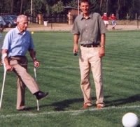 Ehrenmitglied Arno Feldner weihte den 2. Rasenplatz 2001 ein.